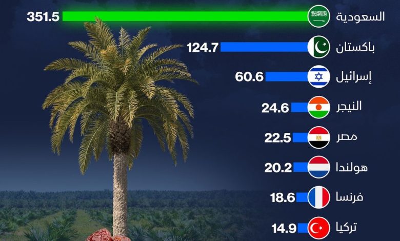 إنفوغراف: السعودية تقود صادرات التمور عالمياً ومصر خامساً