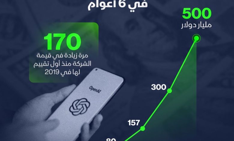 إنفوغراف: قيمة “OpenAI” السوقية تقفز 170 مرة خلال 6 أعوام