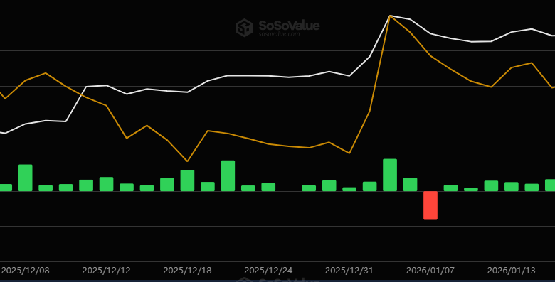 وقد اجتذبت الأدوات الاستثمارية اهتماما كبيرا، وتجاوز صافي التدفقات التراكمية 1.23 مليار دولار. وفي الأيام القليلة الماضية (على الرغم من اضطراب السوق)، ظلت التدفقات الصافية إيجابية. في الواقع، آخر يوم للشمعة الحمراء كان يوم 29 يناير.