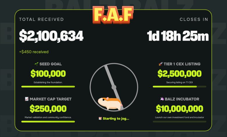 في قلب BALZ يوجد إطلاق Fair-As-F* (FAF)، وهو بيع مسبق للعملة لفترة محدودة سيتم إغلاقه في 31 أكتوبر الساعة 23:59 بتوقيت المحيط الهادئ. في غضون أيام من الافتتاح، جمعت BALZ أكثر من 2 مليون دولار، مما يشبه عمليات الإطلاق السابقة التي قادها المجتمع مثل Shiba Inu وFloki في عام 2020.