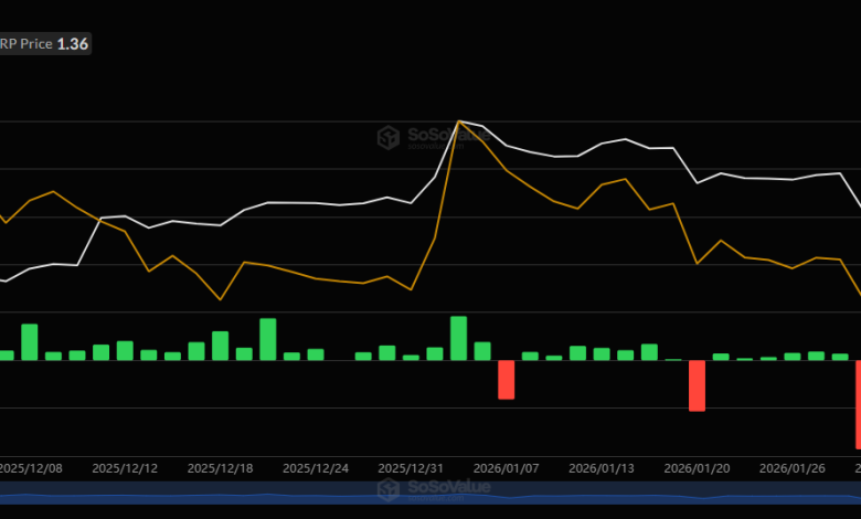 إن حالة النظام البيئي الأوسع، حيث غادر أكثر من 150 مليار دولار إجمالي القيمة السوقية خلال 36 ساعة، هي السبب الأكثر وضوحًا وراء تصحيح XRP بنسبة 4.5٪ إلى 1.33 دولار. ومع ذلك، قد يكون هناك واحد آخر يكمن.
