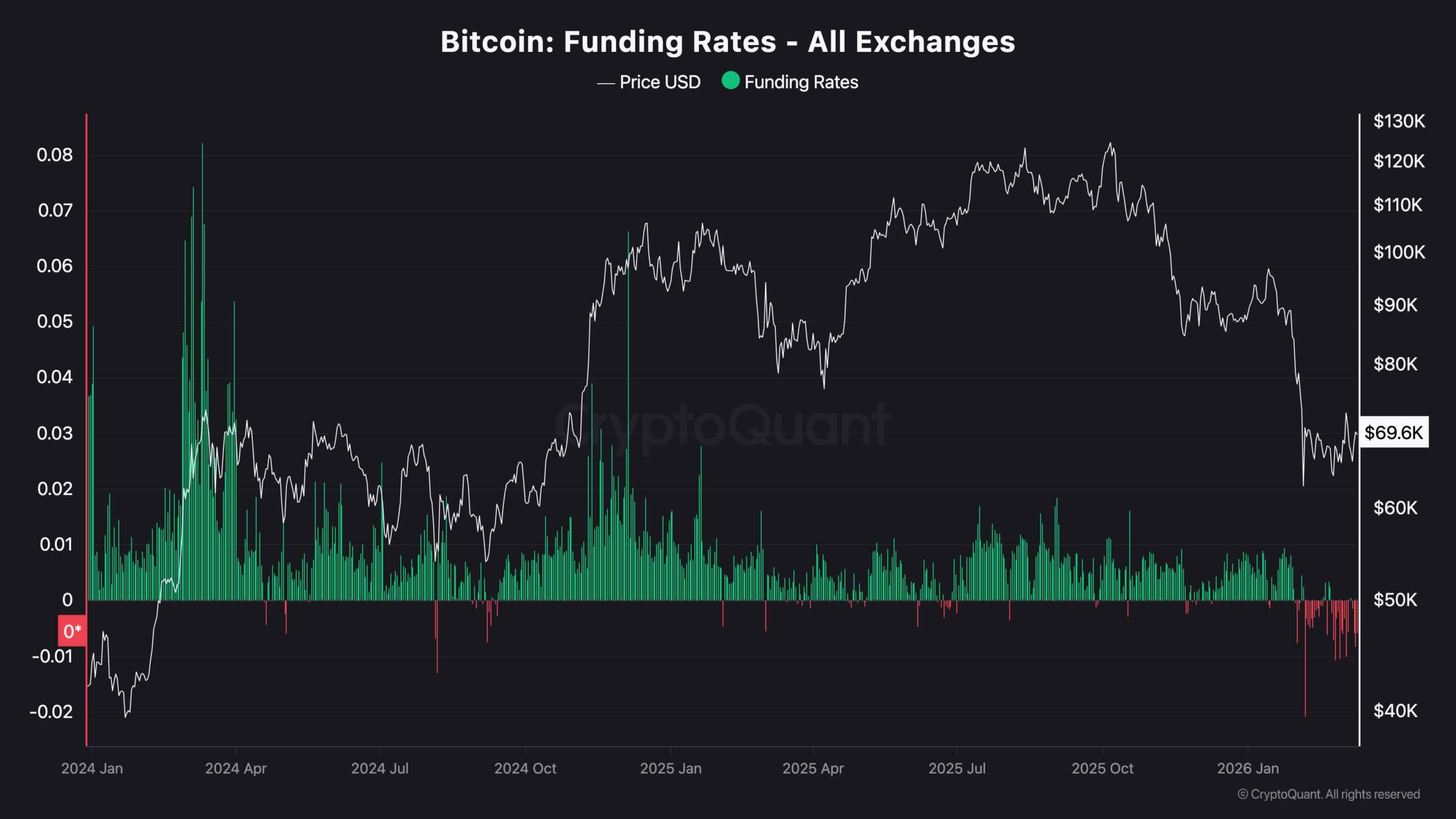 ومن منظور المعنويات، تحولت معدلات التمويل إلى السلبية مرة أخرى بعد أن أمضت معظم العام الماضي في المنطقة الإيجابية. يشير هذا إلى أن متداولي المشتقات المالية أصبحوا أكثر حذرًا وسلبية وأن مراكز البيع على المكشوف بدأت في التزايد، حتى في الوقت الذي يحاول فيه السعر الاستقرار فوق أدنى مستوياته الأخيرة.