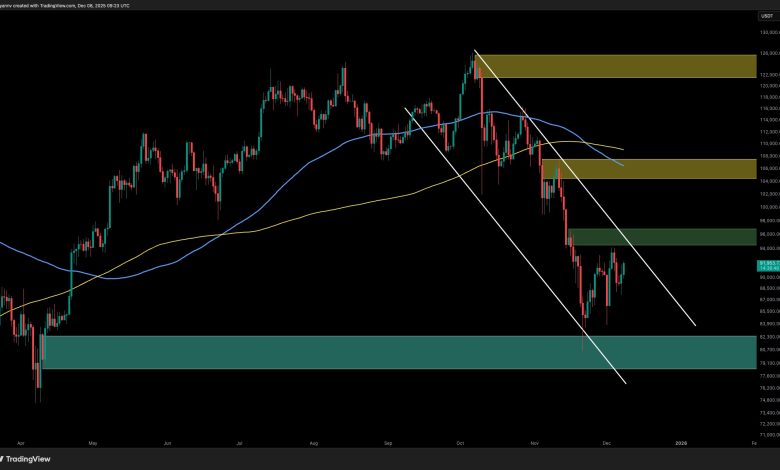 في الاتجاه الصعودي، ستكون استعادة سعر 94 ألف دولار والإغلاق فوقه أول إشارة ذات معنى لانعكاس الاتجاه، مما يفتح الطريق نحو منطقة العرض الرئيسية التالية بحوالي 105 ألف دولار – 108 ألف دولار. حتى ذلك الحين، من المرجح أن يظل السوق محدودًا بالنطاق، مع استمرار حركة السعر المتقلبة داخل الهيكل الهبوطي.