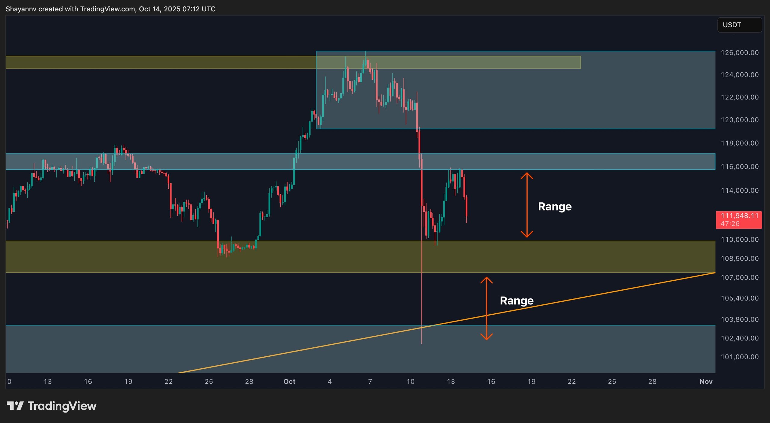 لقد انتقل الانخفاض الأخير للبيتكوين إلى مرحلة التوحيد، حيث يتأرجح السعر بين نطاقين محددين جيدًا. ويشير الهيكل الأوسع إلى أن السوق يتباطأ بعد التصحيح الحاد الذي أعقب الارتفاع، في حين أن التراجع الأخير إلى المتوسط المتحرك لمدة 100 يوم أثار مخاوف على المدى القصير.