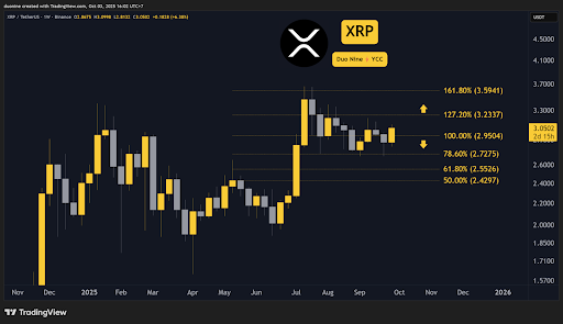 بالنظر إلى المستقبل ، يبدو أن XRP ينهي توحيده بين 2.7 دولار و 3 دولارات وهو جاهز للمستويات العليا. إذا كان الأمر كذلك ، فإن ATH عند 3.6 دولار يمكن أن يكون مغناطيسًا رئيسيًا للمشترين في الربع الأخير من عام 2025.