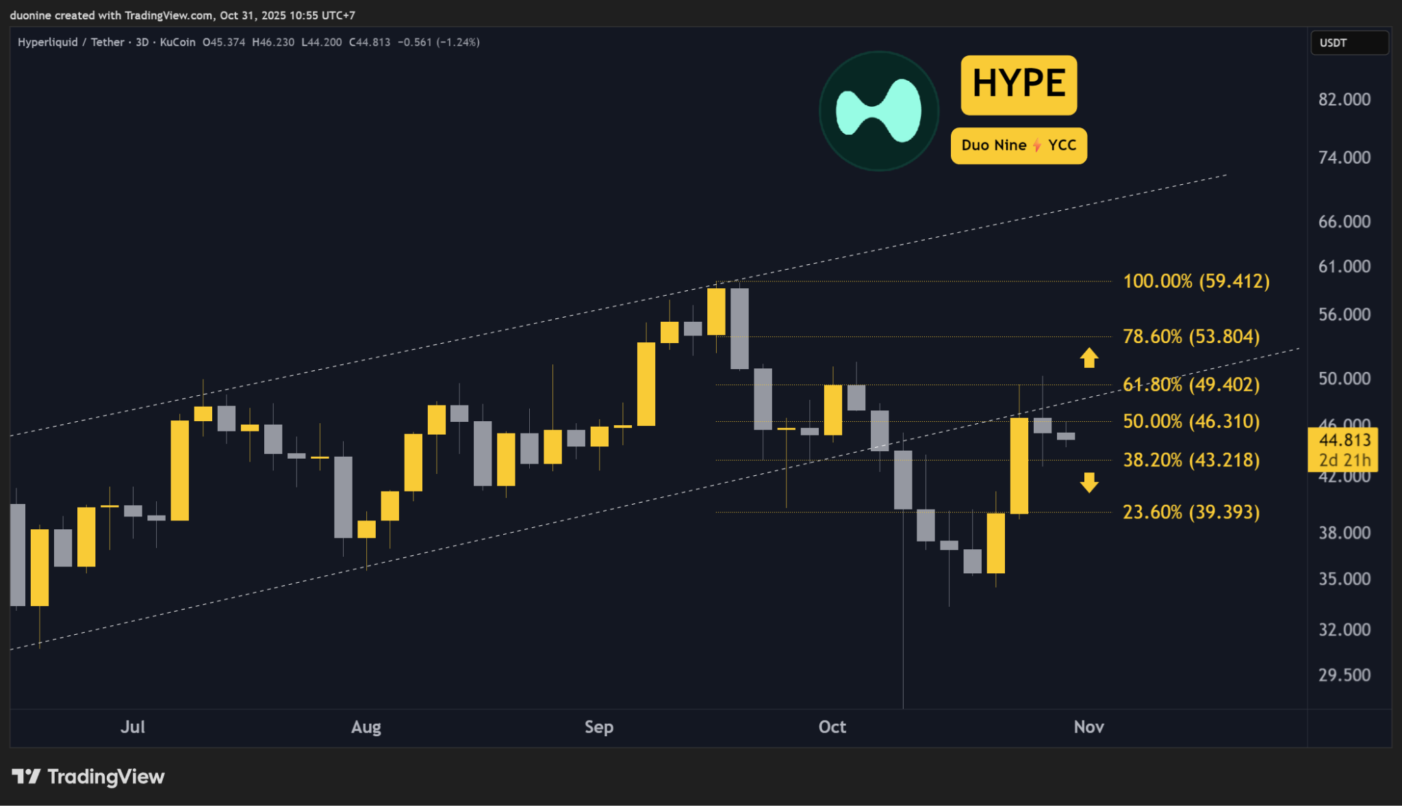 تتمتع هذه العملة المشفرة بدعم قوي عند 43 دولارًا و39 دولارًا، في حالة تكثيف البيع لاحقًا. في وقت كتابة هذا المنشور، كان سعر HYPE حوالي 45 دولارًا.