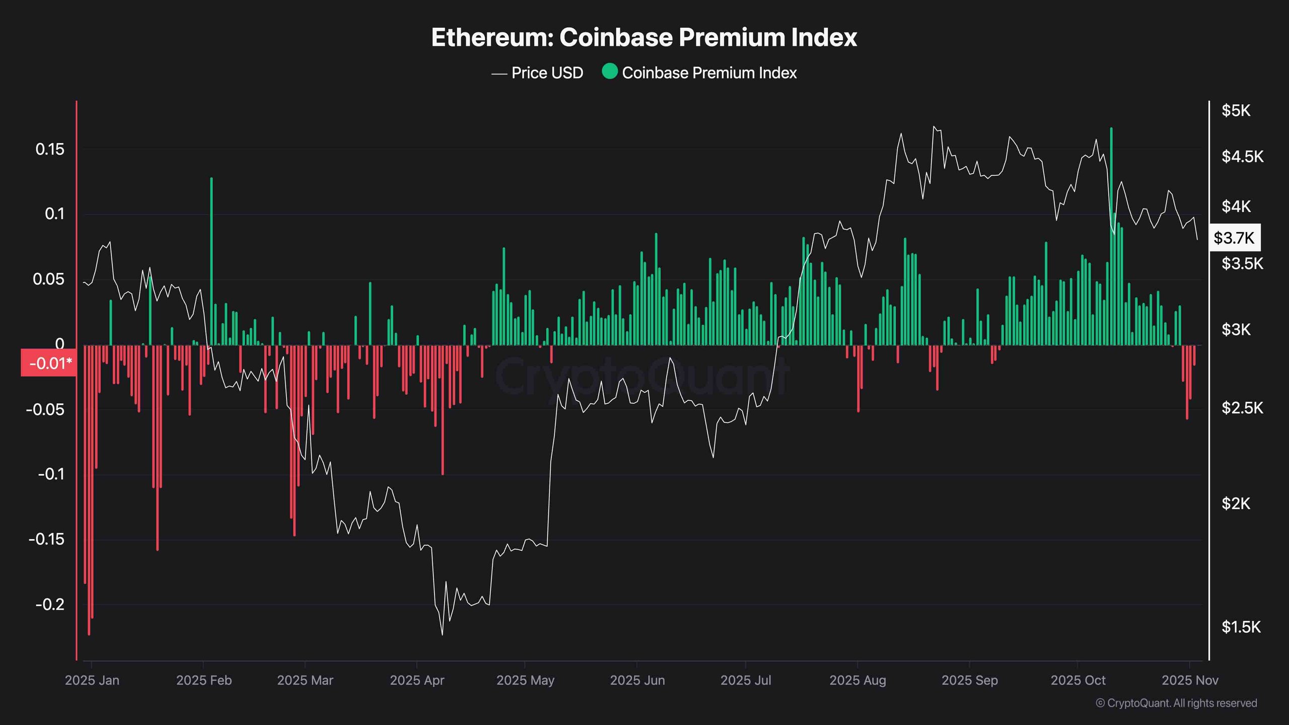 بدأت المعنويات في التحول بشكل سلبي مرة أخرى. انقلب مؤشر Coinbase Premium بشكل سلبي للغاية، مما يشير إلى أن المشترين المقيمين في الولايات المتحدة لم يعودوا يقدمون عطاءات قوية. تاريخياً، تميل الفترات الطويلة من الأقساط السلبية إلى التزامن مع مراحل التوزيع أو التراجعات الأعمق.