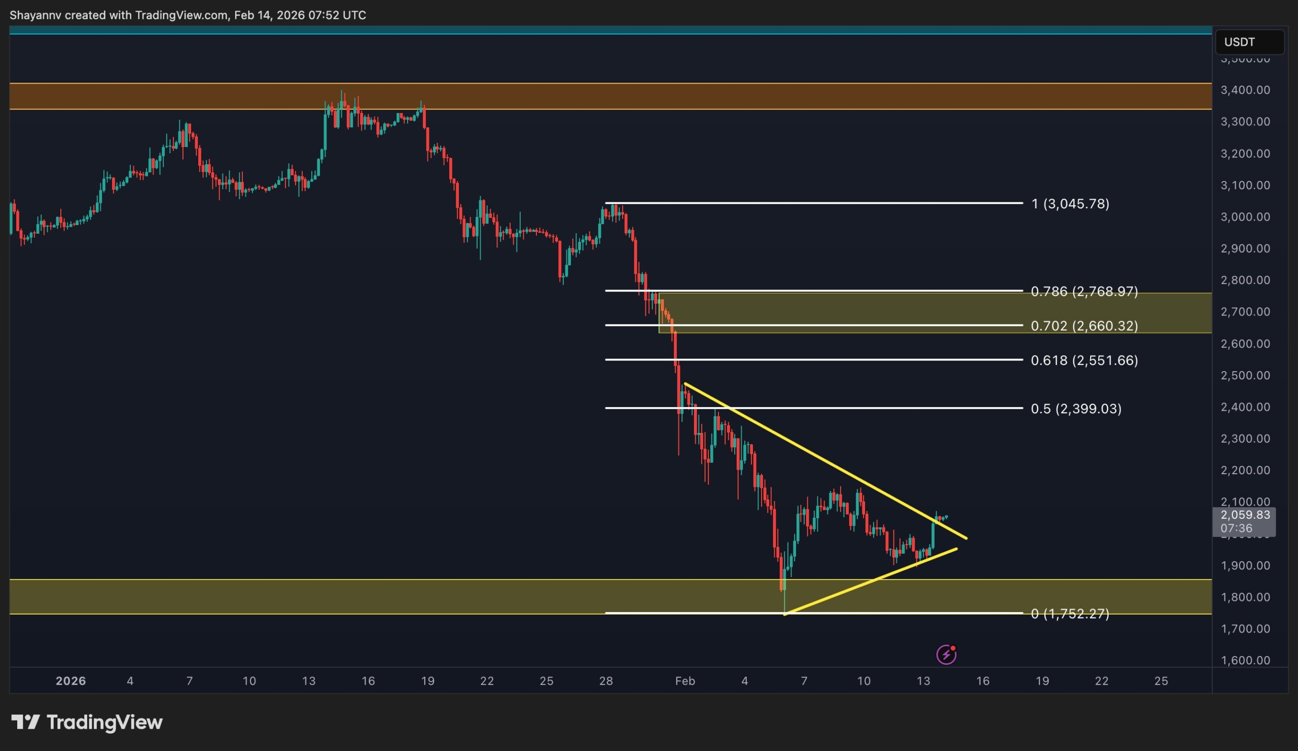 يقف نطاق 2.7 ألف دولار، الذي يتماشى مع مستويات التصحيح 0.702-0.786، كمنطقة إمداد رئيسية وستكون منطقة المقاومة الرئيسية إذا حدث انتعاش أقوى. وطالما ظل سعر ETH أقل من 2.5 ألف دولار، فإن الهيكل الأوسع يفضل البائعين، في حين يظل مستوى 1.7 ألف دولار هو الدعم الحاسم الذي يجب الاحتفاظ به.