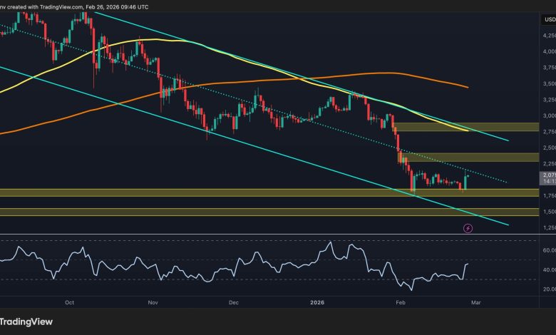 شهدت Ethereum انتعاشًا ملحوظًا من أدنى مستويات الاستسلام الأخيرة بالقرب من منتصف 1700 دولار، لكن الهيكل الأوسع لا يزال تصحيحيًا بعد أشهر من الانخفاض المستمر.