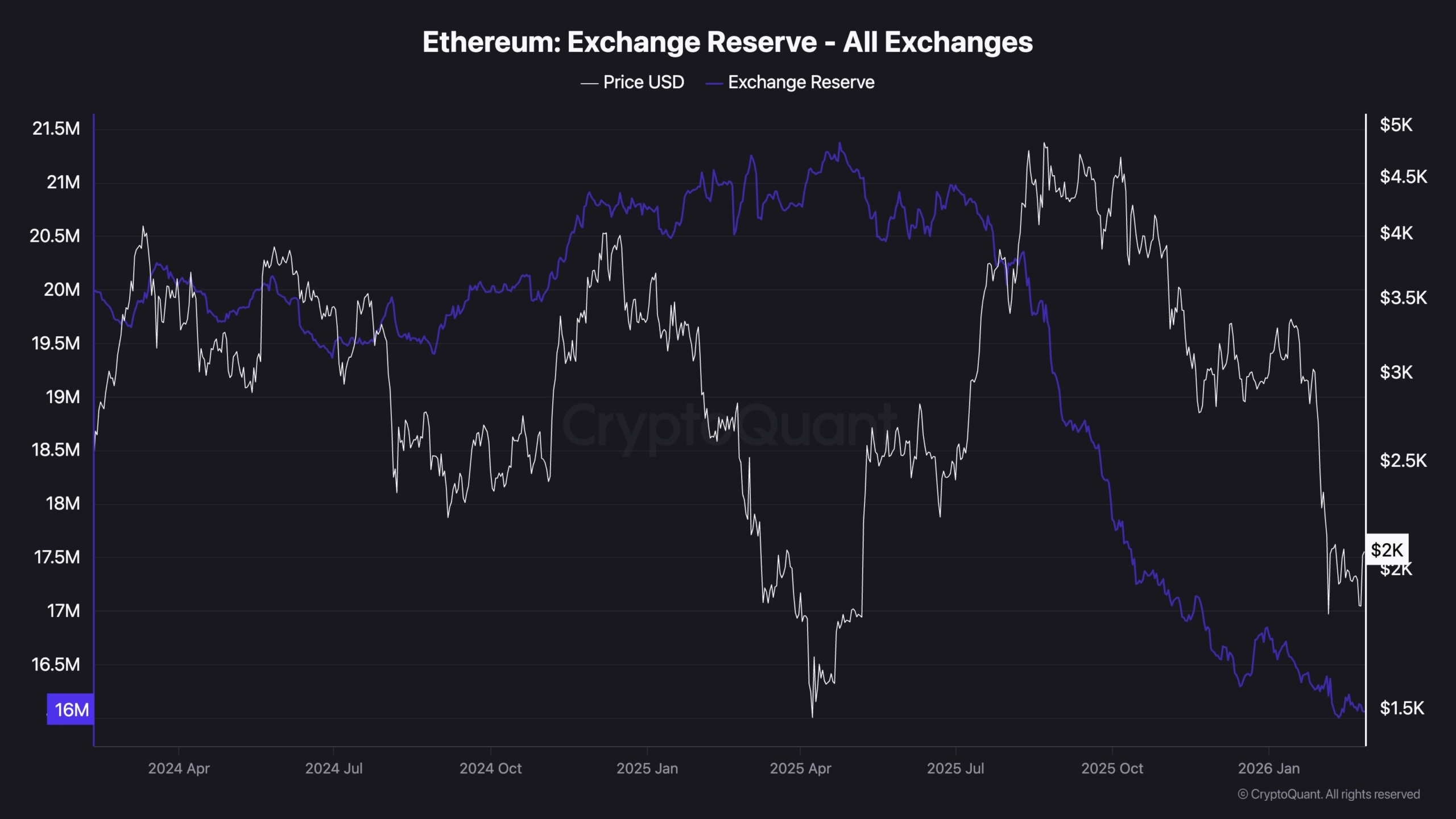 تشير البيانات الموجودة على السلسلة من مقياس احتياطي الصرف إلى أن كمية ETH المحتفظ بها في البورصات المركزية كانت تتجه نحو الانخفاض لعدة أشهر وهي الآن قريبة من أدنى مستوياتها منذ عدة سنوات. وهذا الانخفاض البنيوي في أرصدة الصرف، حتى مع ضعف الأسعار، يعني ضمناً أن حصة متزايدة من العرض يتم نقلها خارج البورصة، سواء إلى الحضانة الذاتية، أو التوقيع على الممتلكات، أو غيرها من الممتلكات الطويلة الأجل، مما يقلل من المجمع الفوري للعملات المعدنية المتاحة للبيع الفوري.