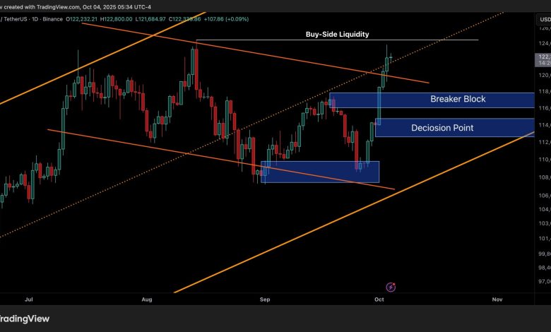 على الرغم من أن الزخم لا يزال صعوديًا بقوة ، إلا أن السوق لا يزال يتعرض لتراجع موجز نحو 114 ألف دولار – 118 ألف دولار لإعادة التوازن قبل أي استمرار محتمل تجاه مستويات مستويات جديدة.