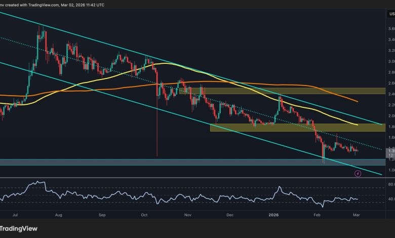 يتركز الدعم حول 1.20 دولار، وهي المنطقة التي تم الدفاع عنها بشكل متكرر بعد التدفق الأخير. وطالما بقي XRP فوق هذا النطاق، يمكن للسوق الاستمرار في تشكيل قاعدة ومحاولة التعافي. ومع ذلك، فإن الانهيار اليومي النظيف تحت 1.20 دولار من شأنه أن يضعف الهيكل ويزيد من احتمالات الانخفاض الأعمق نحو منطقة الدعم التالية بالقرب من 1.00 دولار أو حتى أقل.