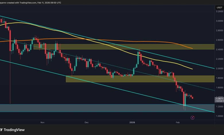 في الوقت الحالي، يتماسك السعر بين 1 دولار و1.5 دولار، حيث يعمل 1 دولار كطلب يومي أساسي. قد يؤدي الانهيار الحاسم إلى ما دون 1 دولار إلى تعريض السوق لاستمرار هبوطي أعمق، في حين أن الإغلاق اليومي القوي فقط فوق 1.5 دولار من شأنه أن يحول الزخم على المدى القصير مرة أخرى لصالح المشترين.