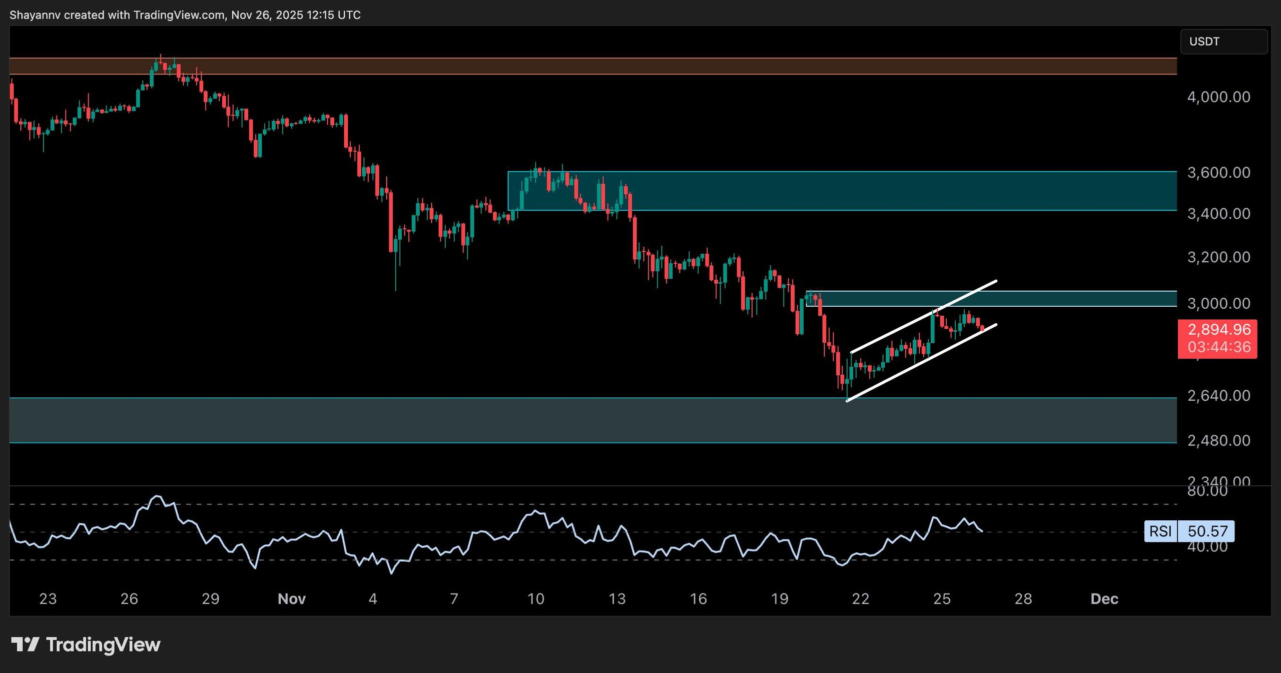 تحليل سعر Ethereum: ارتداد ETH وتتطلع إلى 3 آلاف دولار ولكن الضغط الهبوطي مستمر