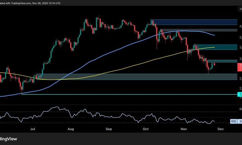 ومع ذلك، لا يزال السعر أقل بكثير من المتوسطين المتحركين لمدة 200 يوم (الأصفر) و100 يوم (الأزرق)، اللذين يعملان كمقاومة ديناميكية. لتحويل الهيكل مرة أخرى إلى الاتجاه الصعودي، تحتاج ETH إلى استعادة منطقة 3500 دولار والتماسك فوقها. وحتى ذلك الحين، تعتبر التحركات الصعودية تصحيحية. قد يؤدي الفشل هنا إلى انخفاض آخر نحو 2500 دولار أو حتى أدنى مستوى حرج عند 2100 دولار.