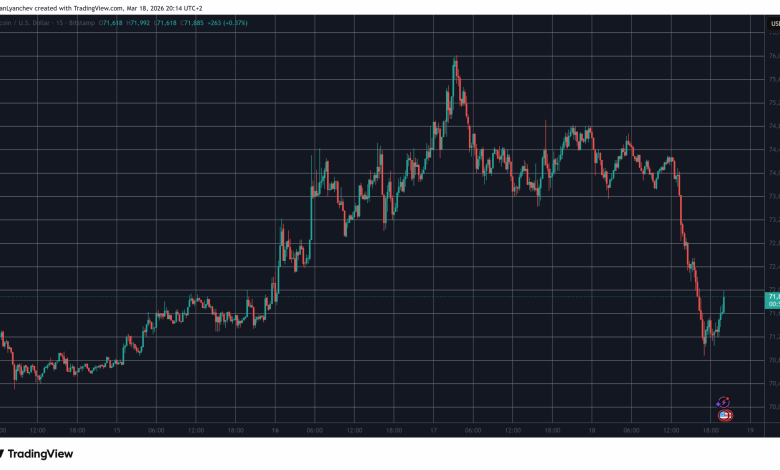 تفاعل سعر البيتكوين على الفور مع الأخبار، على الرغم من أنه كان متوقعًا. كان الأصل قد خسر 5000 دولار في وقت سابق من اليوم في الساعات التي سبقت الاجتماع الثاني للجنة الفيدرالية للسوق المفتوحة لهذا العام، لكنه ارتد إلى 72000 دولار بعد صدور قرار بنك الاحتياطي الفيدرالي.