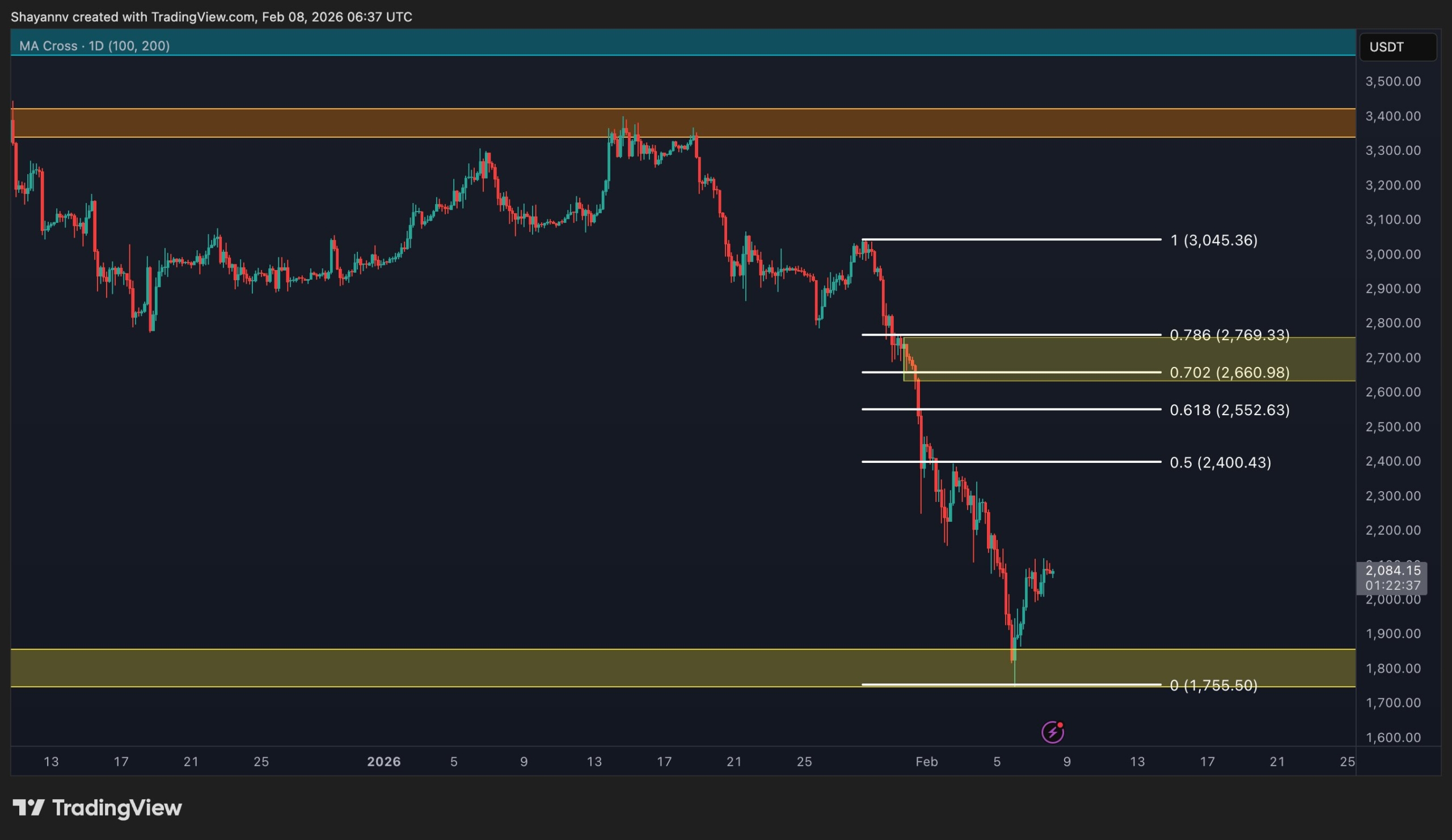 والأهم من ذلك، أن الارتداد يبدو تصحيحيًا ويفتح الباب من الناحية الفنية للتراجع نحو مناطق العرض الأحدث ومستويات فيبوناتشي، الواقعة حول منطقة 2.3 ألف دولار إلى 2.6 ألف دولار. تتوافق هذه المناطق مع مستويات الانهيار السابقة وتتوافق مع المناطق التي تدخل فيها البائعون بقوة في السابق. إذا تراجع السعر إلى هذه المستويات دون حجم أو زخم قوي، فمن المرجح أن تكون بمثابة مناطق رفض بدلاً من نقاط اختراق.