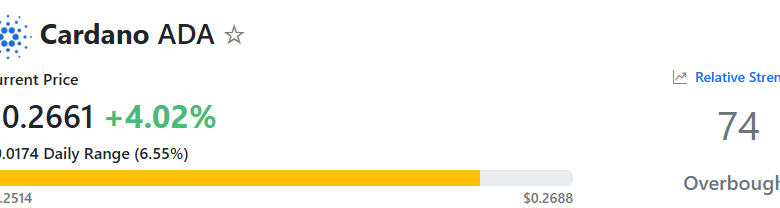 تشير القراءات فوق 70 إلى أن ADA قد دخل منطقة ذروة الشراء ويمكن أن يكون على وشك التصحيح، في حين أن النسب أقل من 30 تفضل السيناريو الصعودي. حتى كتابة هذه السطور، يقف مؤشر القوة النسبية عند حوالي 74.
