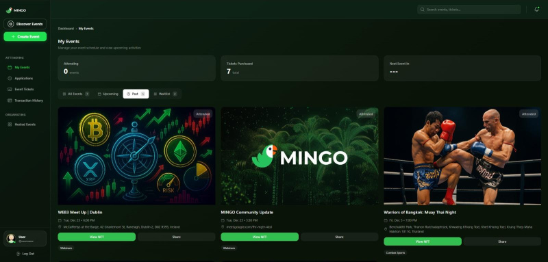 تم تصميم MINGO Tickets كتطبيق ويب تقدمي ومدعوم ببنية تحتية على مستوى المؤسسات على شبكة Hedera، ويعمل بسلاسة عبر الأجهزة دون تنزيل التطبيقات. وهو يعالج مشكلات التذاكر الأساسية مثل الاحتيال والازدواجية، ودعم الأحداث كبيرة الحجم بتكاليف يمكن التنبؤ بها، والأداء السريع، والنزاهة المضمنة.