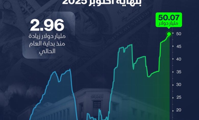 إنفوغراف: احتياطي مصر من النقد الأجنبي يتجاوز 50 مليار دولار